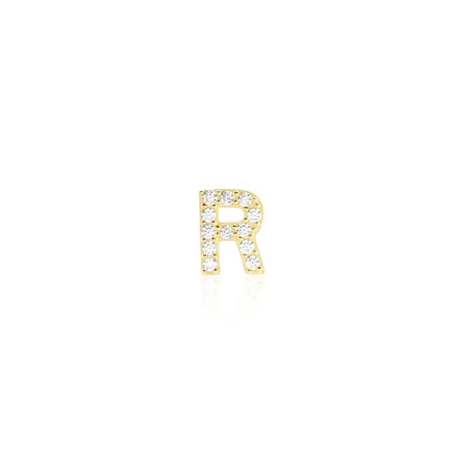 Boucle D’oreille Puce Unitaire Or Jaune 375/1000 Lettre R Oxydes De Zirconium