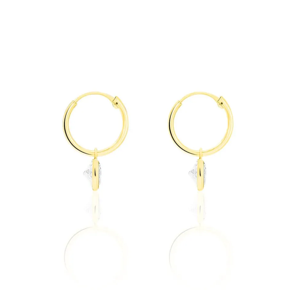 Boucles D’oreilles Or Jaune 375/1000 Creoles Pampilles Coeurs Oxydes De Zirconium