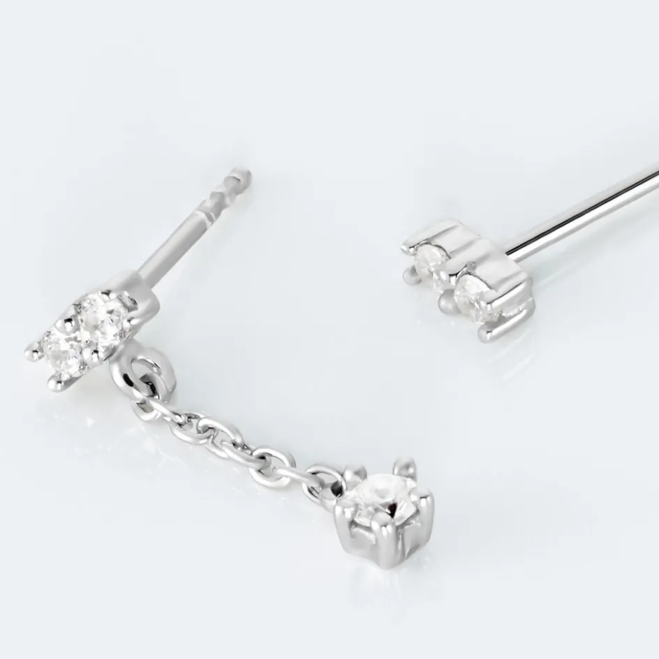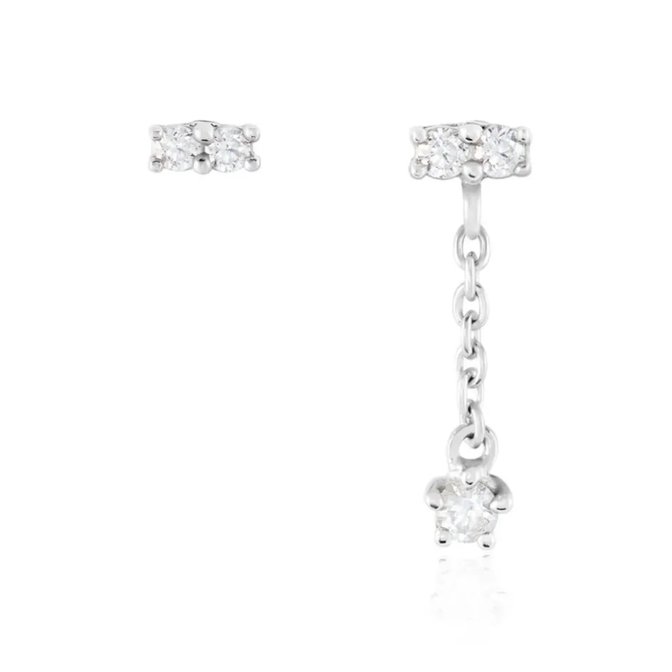 Boucles D’oreilles Dépareillées Argent Blanc 925/1000 Solitaire Et Barrettes Oxydes De Zirconium Sertis Griffes