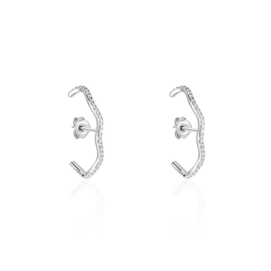 Boucles D’oreilles Argent 925/1000 Effet Manchettes De Lobe Pavage Oxydes De Zirconium 21.7mm