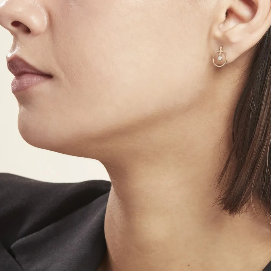 Boucles D’oreilles Or Jaune 375/1000 Motifs Cercles Ronds Diamants