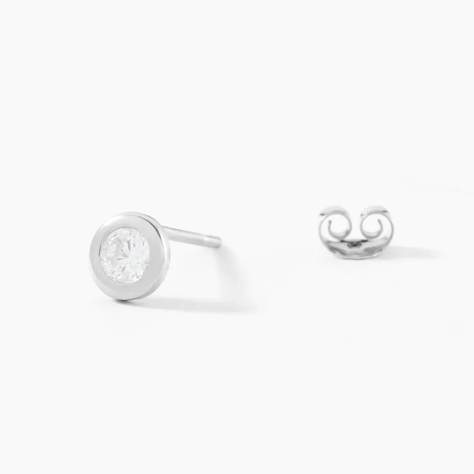 Boucles D’oreilles Puces Argent Blanc 925/1000 Oxydes De Zirconium Sertis Clos 4mm