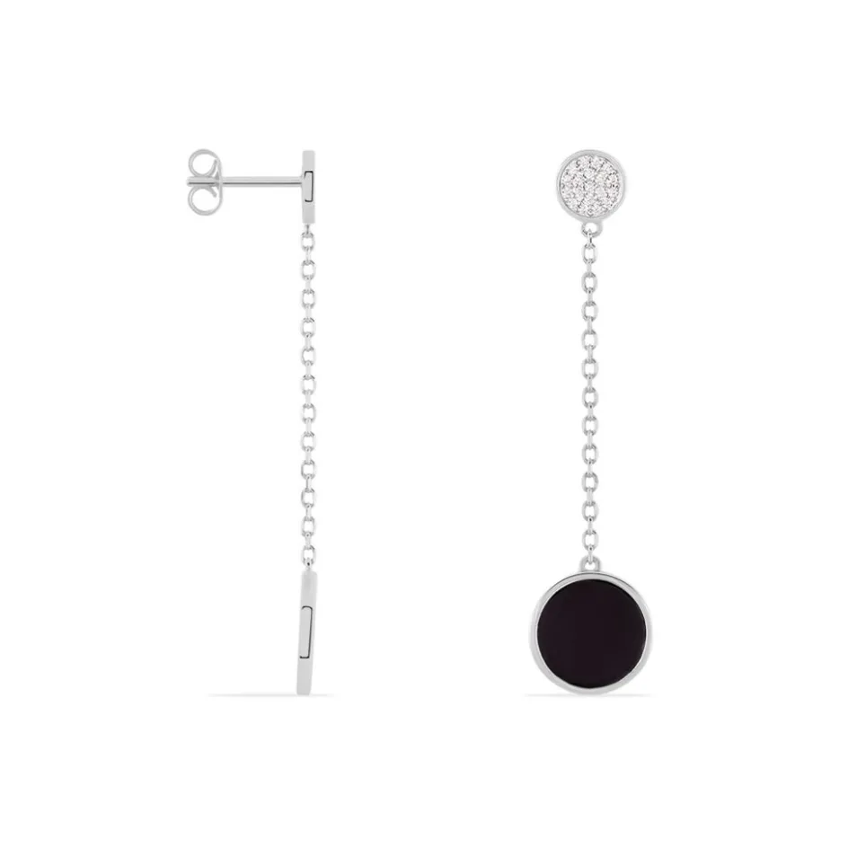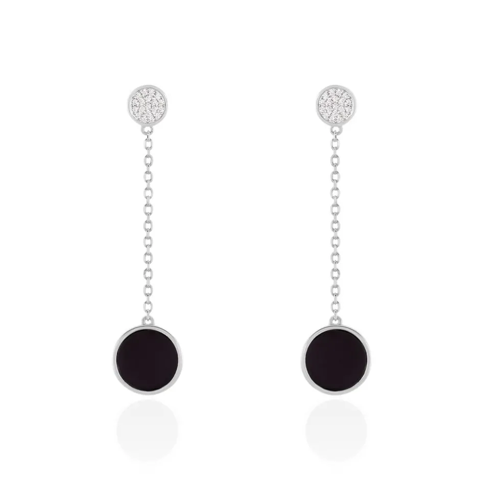 Boucles D’oreilles Argent 925/1000 Double Ceramique Et Oxyde
