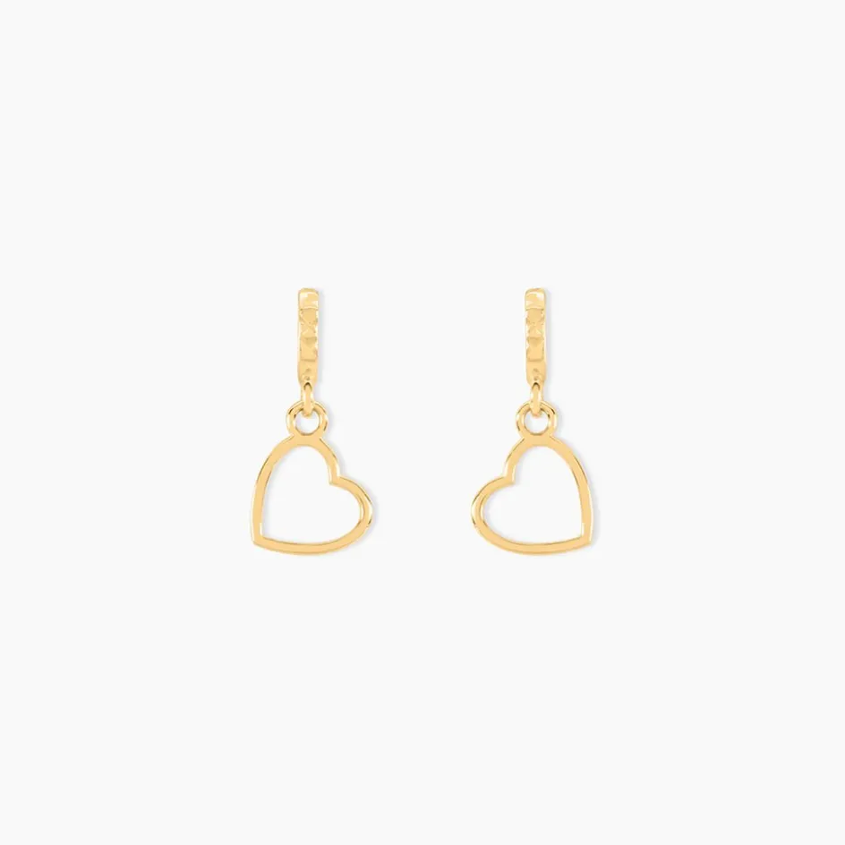 Boucles D’oreilles Or Jaune 375/1000 Formes Petits C艙urs Pendants