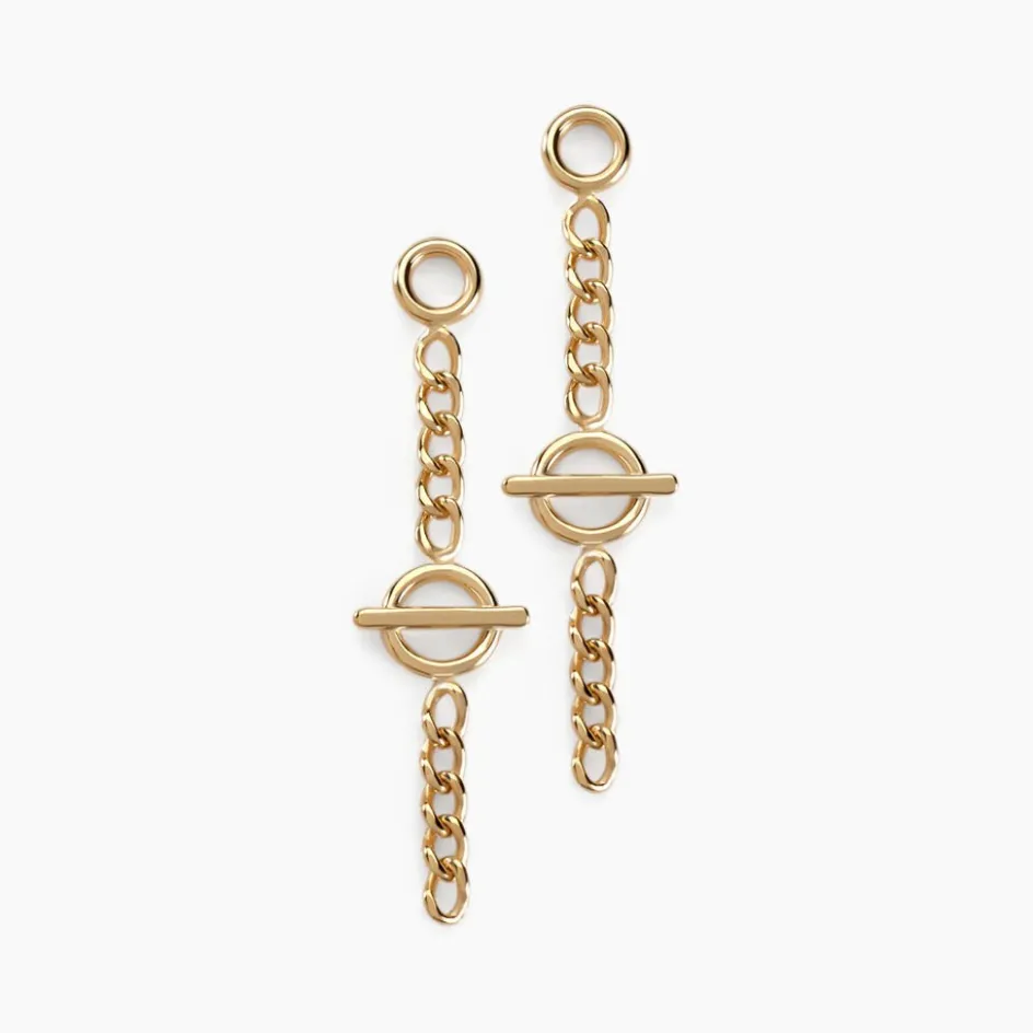 Boucles D’oreilles Pendantes Or Jaune 375/1000 Cercle Barré Ajouré Chaine Gourmette