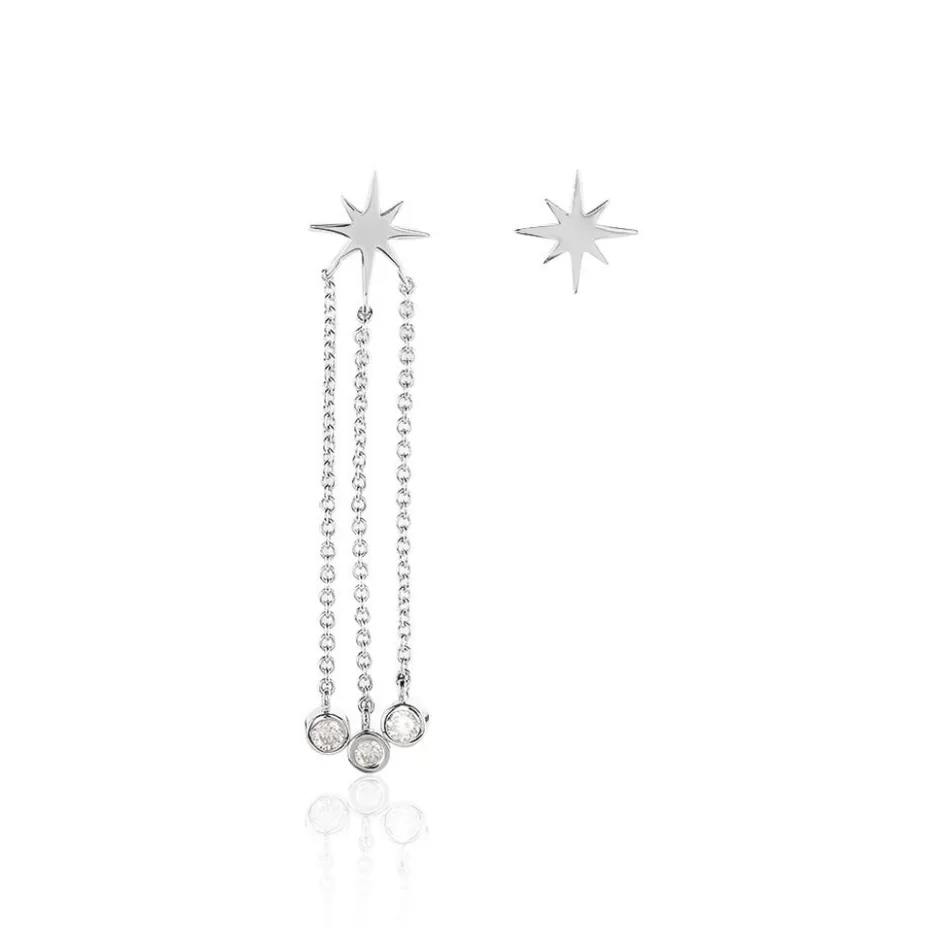 Boucles D’oreilles Dépareillées Argent 925/1000 Etoiles Filantes Oxydes De Zirconium