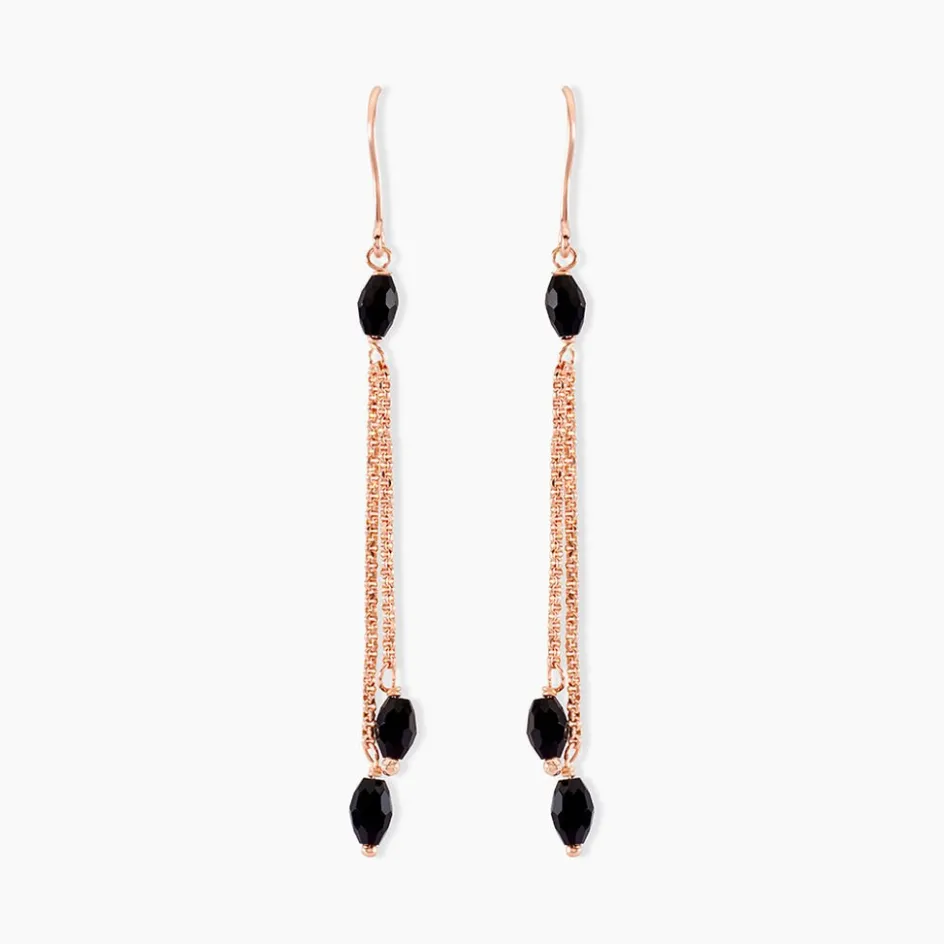 Boucles D’oreilles Pendantes Argent Rose 925/1000 Pierres Noires Mailles Forcat