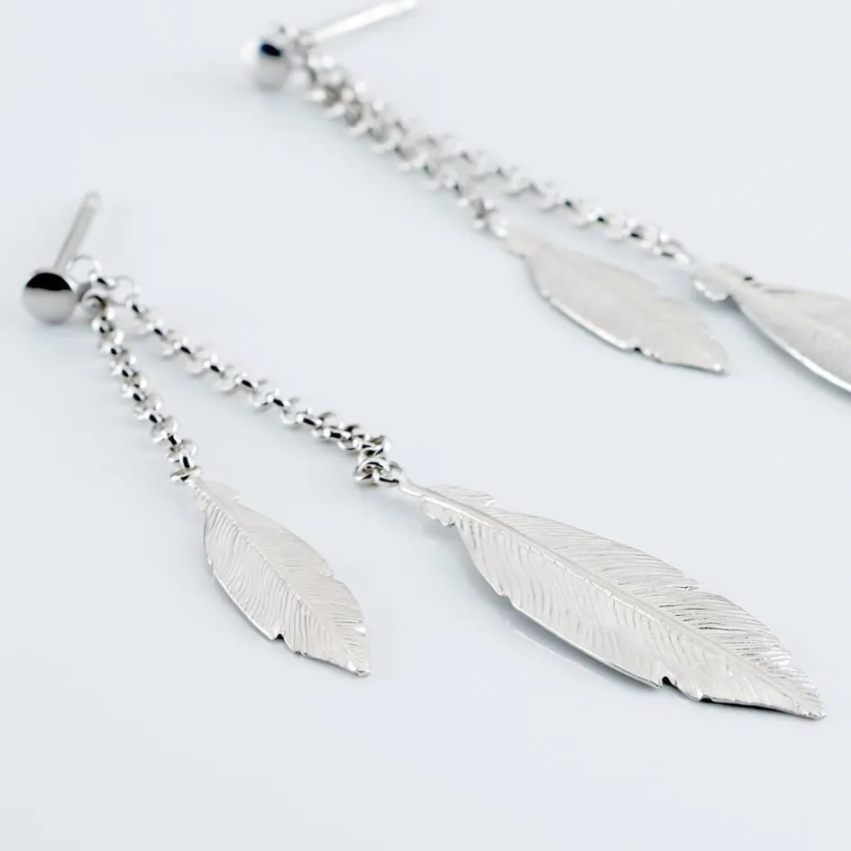 Boucles D’oreilles Pendantes Argent Blanc 925/1000 Plumes Double Mailles Forcat