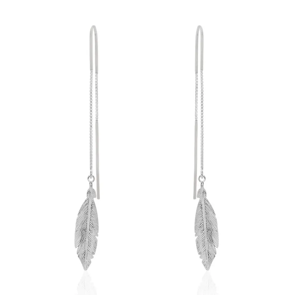 Boucles D’oreilles Pendantes Argent Blanc 925/1000 Plumes Mailles Forcat