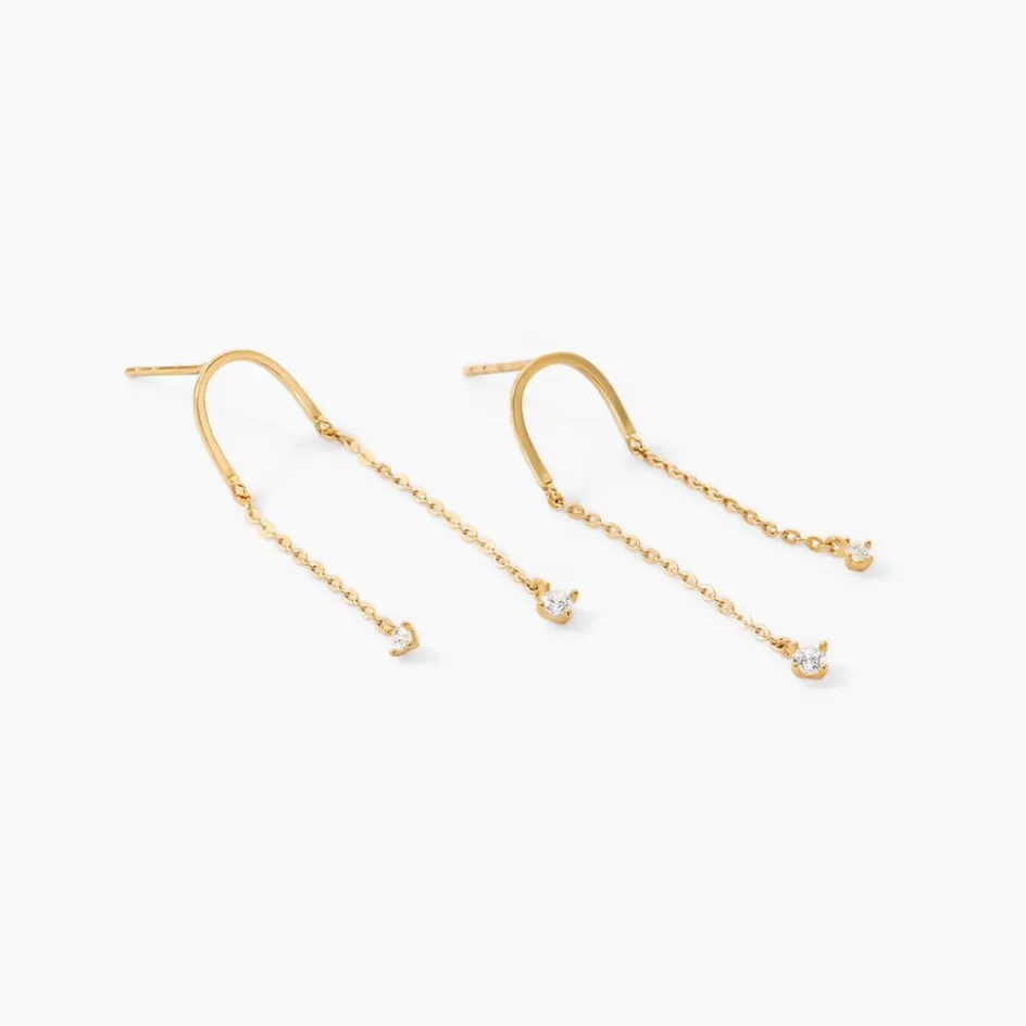 Boucles D’oreilles Pendantes Or Jaune 375/1000 Oxydes De Zirconium Serti Griffes Demi Cercle Double Chaine Forcat 3cm