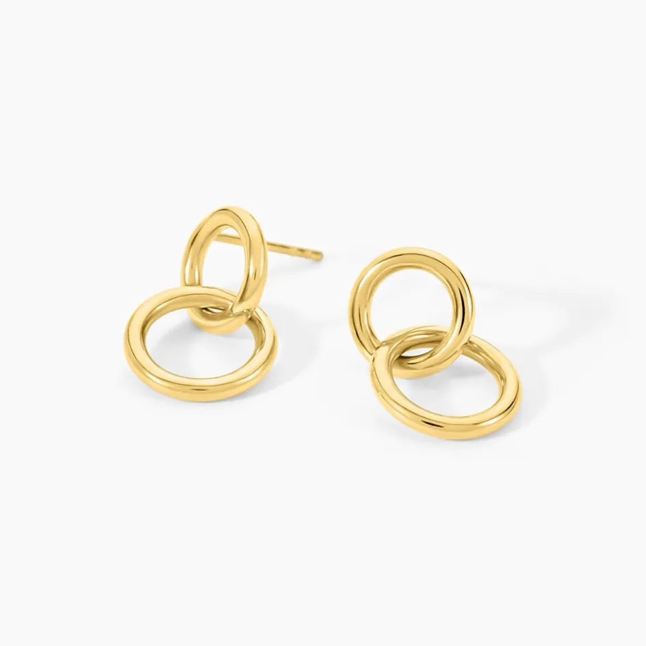 Boucles D’Oreilles Pendantes Acier Inoxydable Jaune Double Cercle 1.5Cm