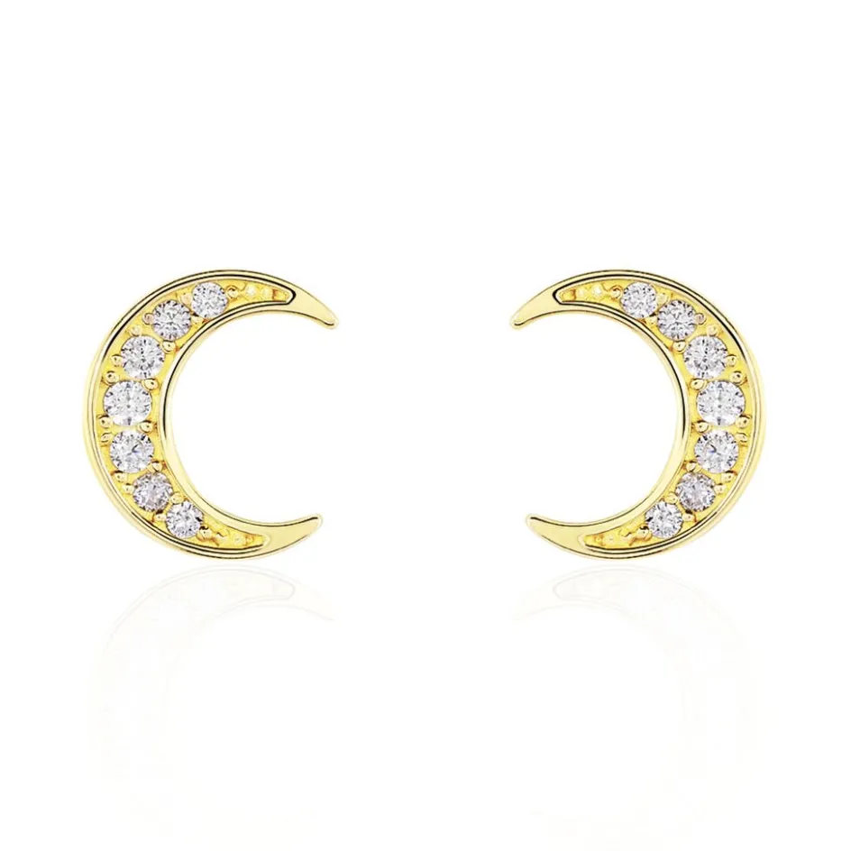 Boucles D’oreilles Or Jaune 375/1000 Lune Oxyde De Zirconium