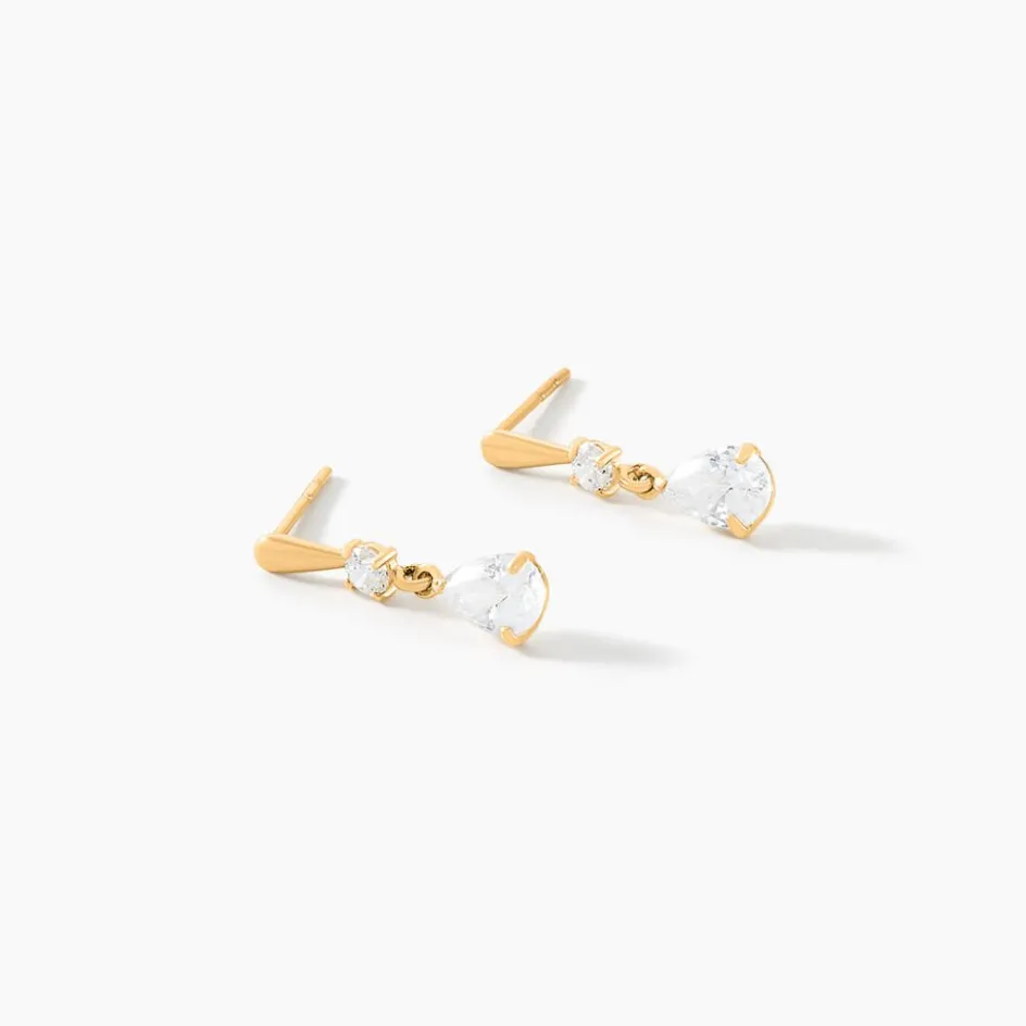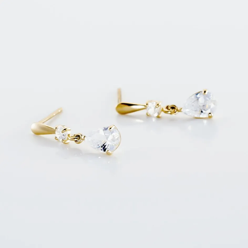 Boucles D’oreilles Pendantes Or Jaune 375/1000 Goutte Oxydes De Zirconium