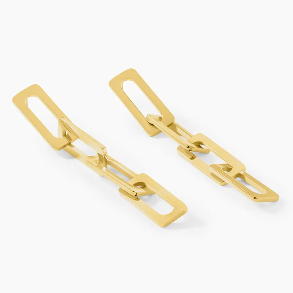 Boucles D’oreilles Pendantes Acier Inoxydable Jaune Maillons Entrelaces Longueur 8.2cm