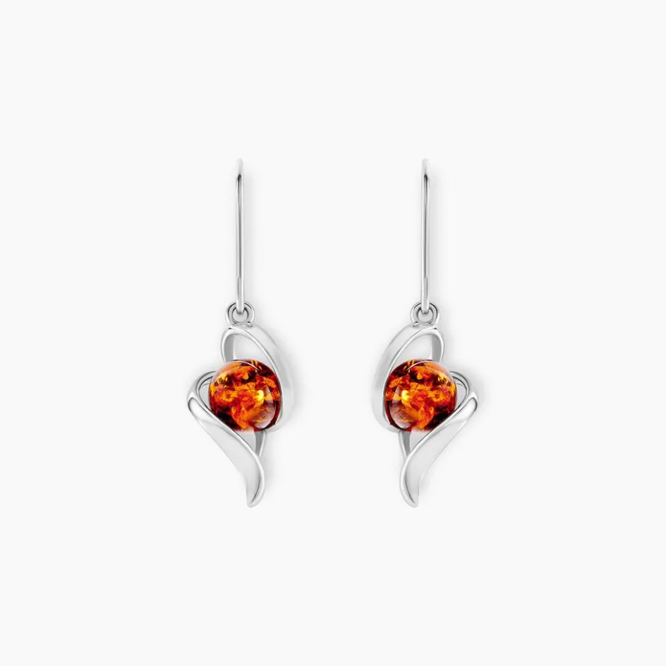 Boucles D’oreilles Argent Blanc 925/1000 Ambres Rondes