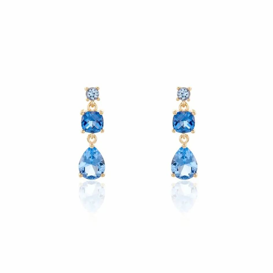 Boucles D’oreilles Pendantes Plaqué Or Jaune Pierres Artificielles Bleues