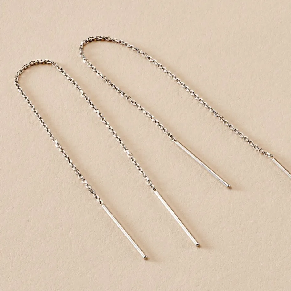 Boucles D’oreilles Pendantes Argent Blanc 925/1000 Double Pendantes Maille Forcat 6.5cm
