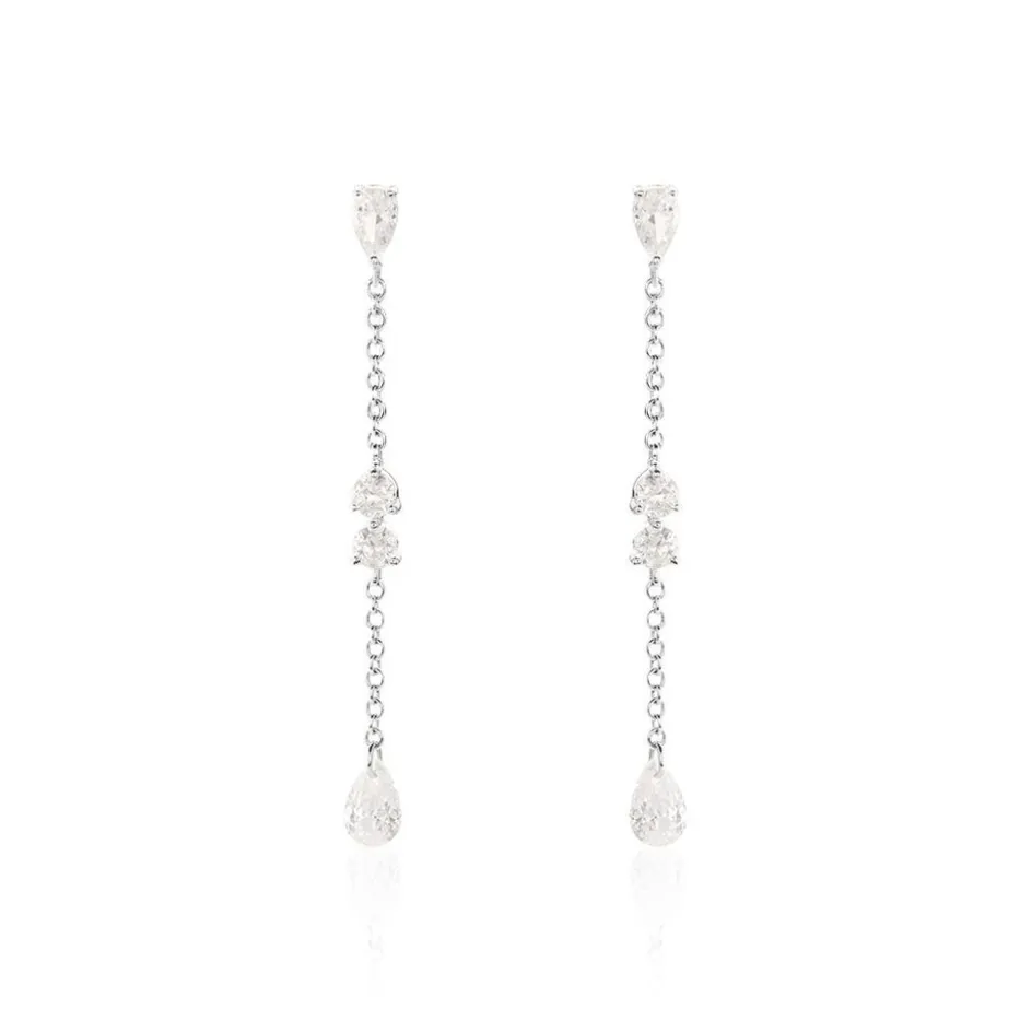 Boucles D’oreilles Pendantes Argent 925/1000 Oxydes De Zirconium Sertis Griffes