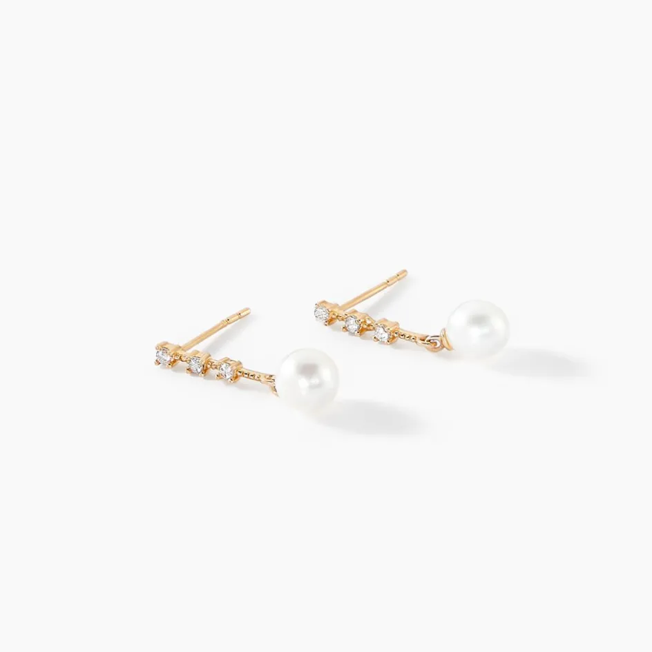 Boucles D’oreilles Or Jaune 375/1000 Barrettes Oxydes De Zirconium Et Perles De Culture 5mm