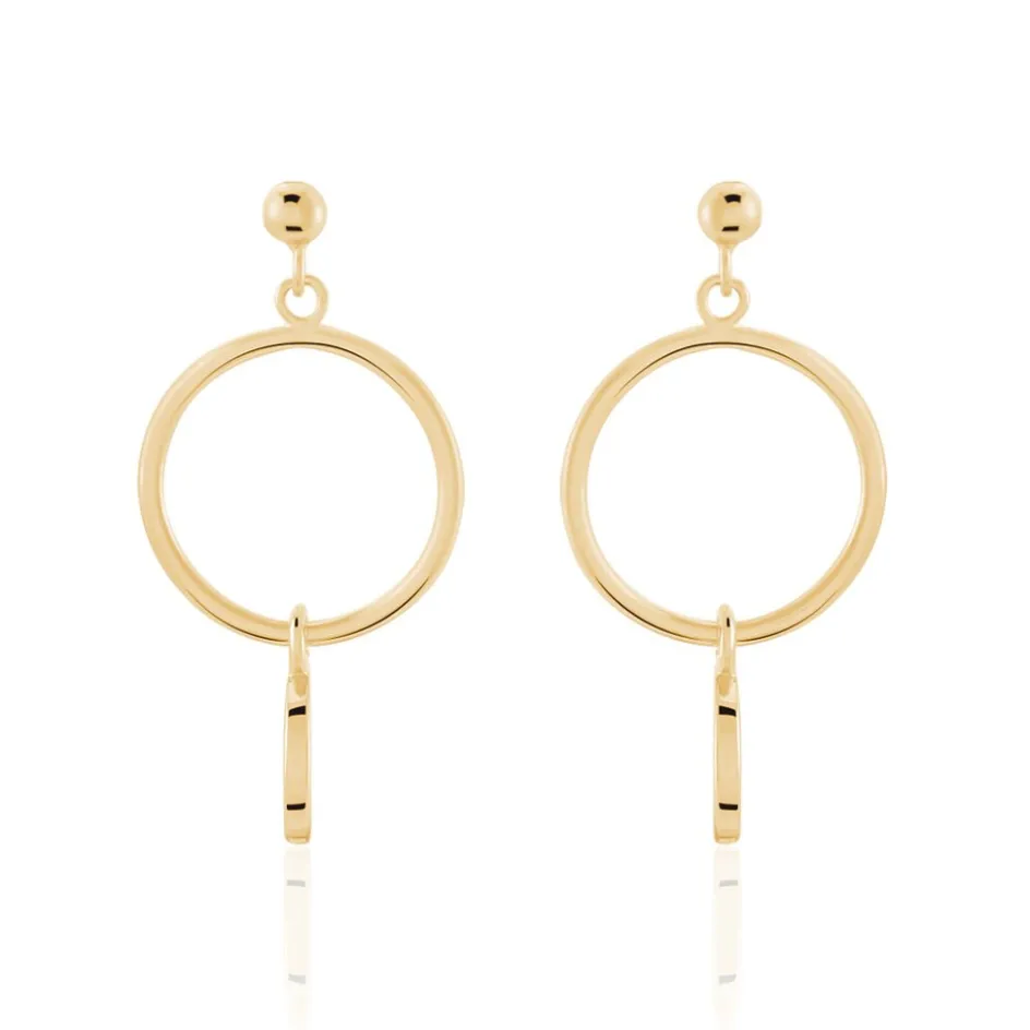 Boucles D’oreilles Pendantes Plaqué Or Jaune Cercles Ajoures Et Pastille 艙il