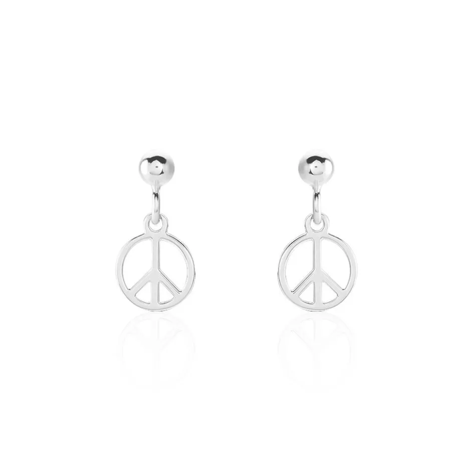 Boucles D’oreilles Pendantes Argent Blanc 925/1000 Motifs Peace