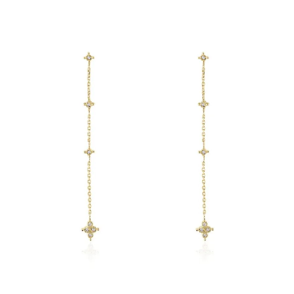 Boucles D’oreilles Pendantes Plaque Or Chaines Forçat Etoiles Oxydes De Zirconium