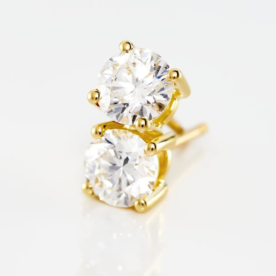 Boucles D’oreilles Or Jaune 750/1000 Puces Diamants Synthetique 1.2cts Sertis 4 Griffes Systemes Alpas