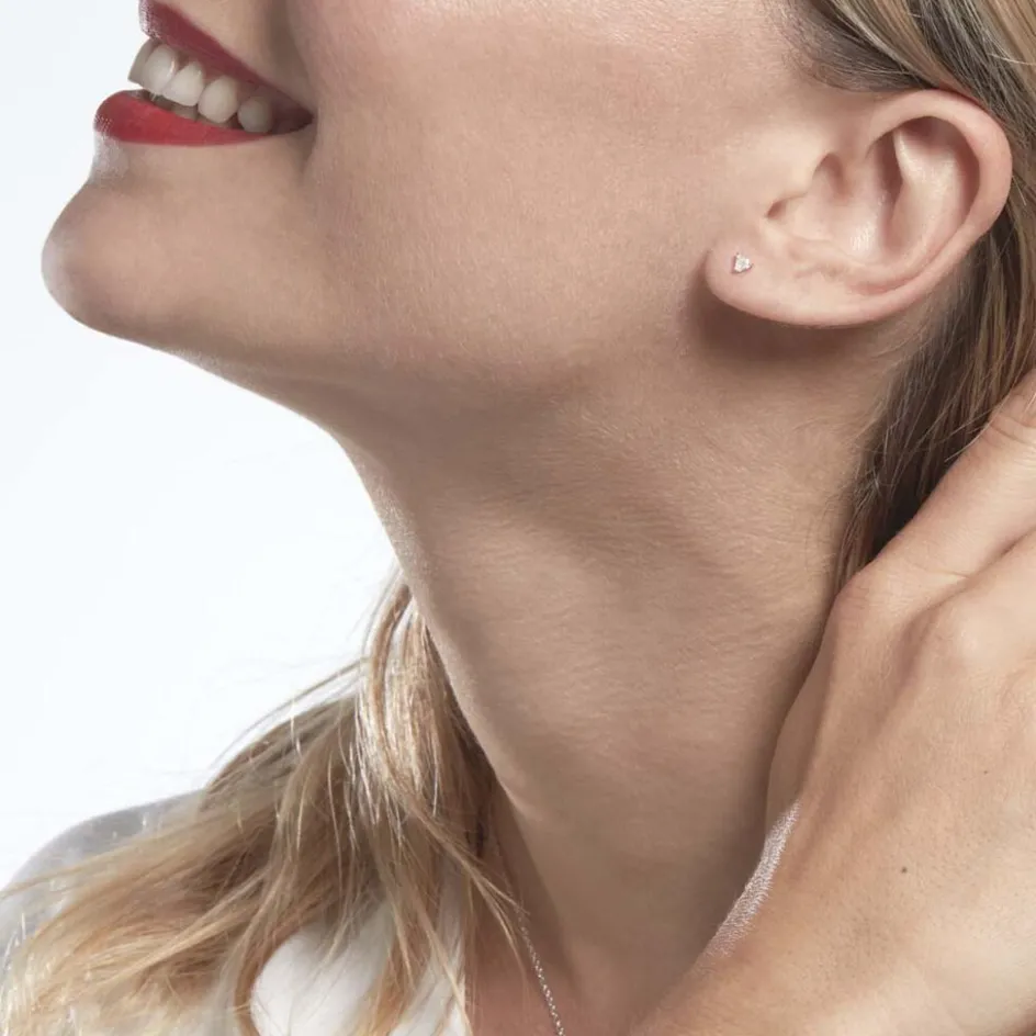 Boucles D’oreilles Puces Or Jaune 375/1000 Triangles Serti Griffes Oxydes De Zirconium
