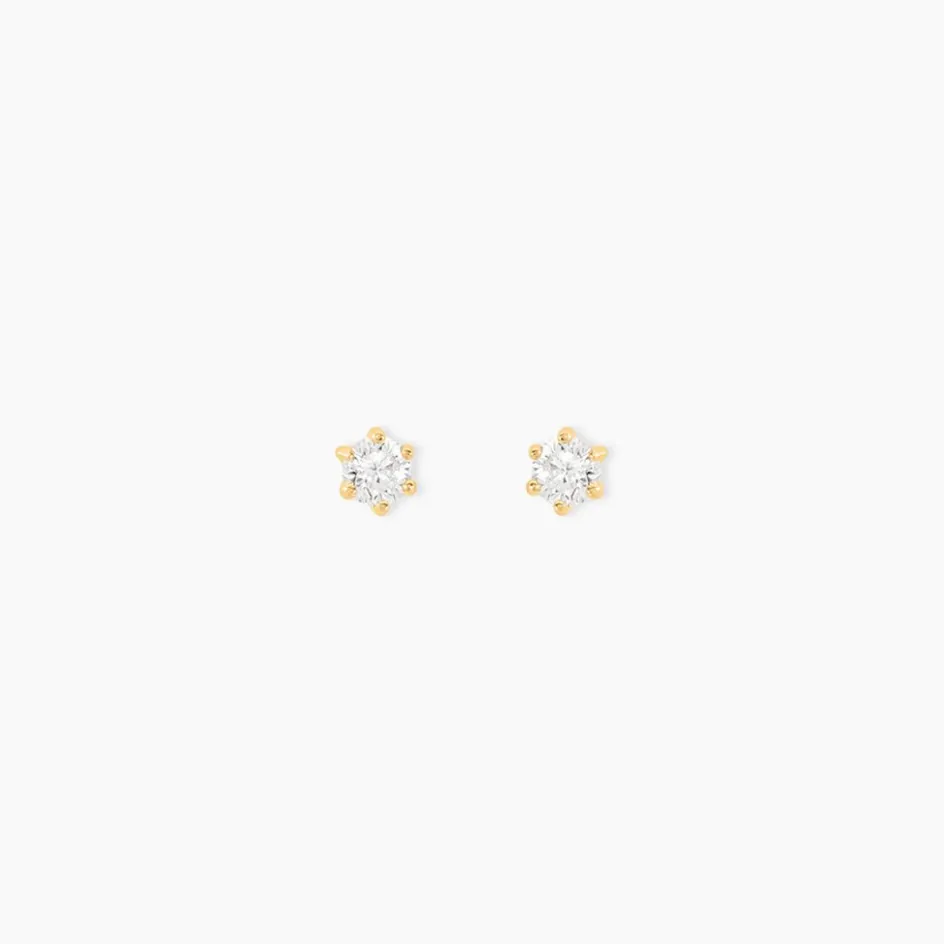 Boucles D’oreilles Puces Or Jaune 375/1000 Rondes Serti Griffes Oxydes De Zirconium 3x4mm