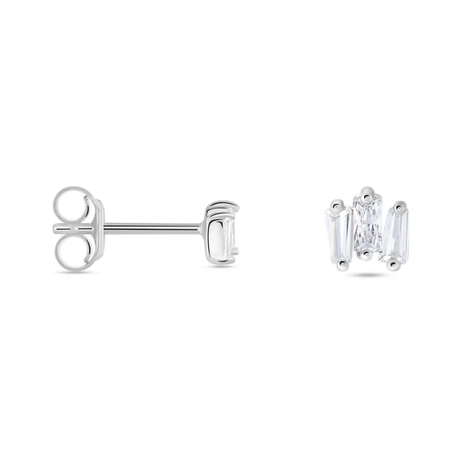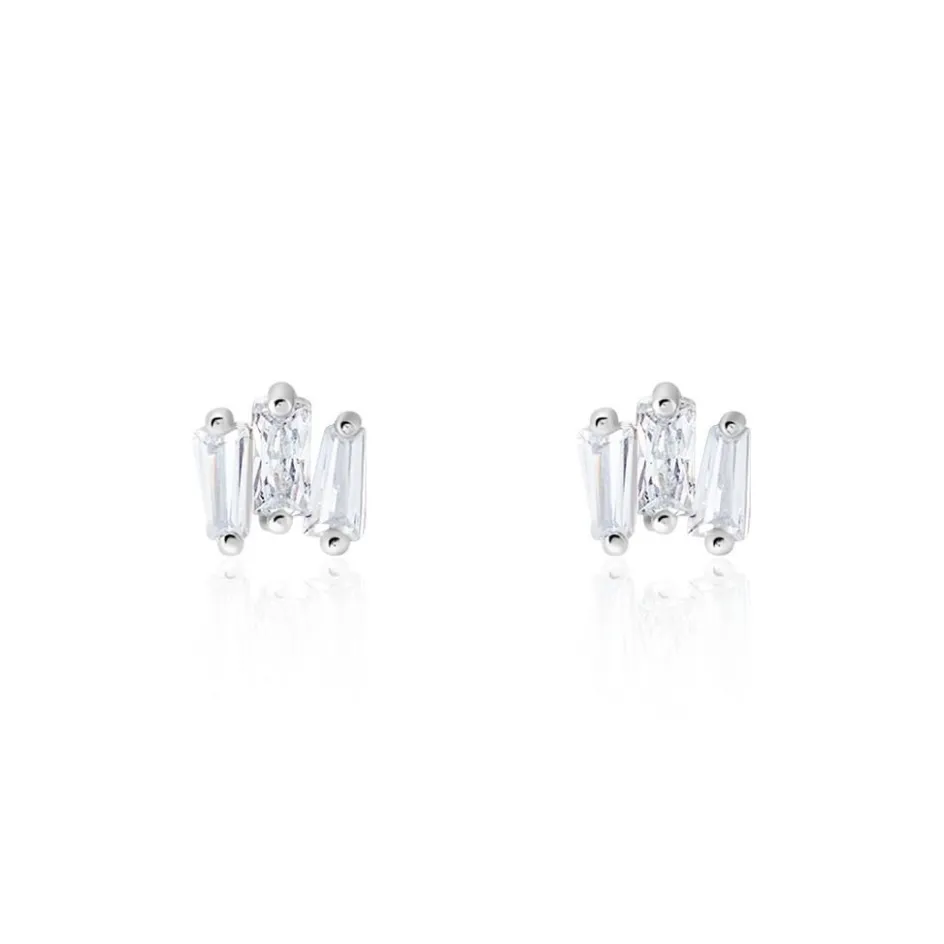 Boucles D’oreilles Puces Argent 925/1000 Petites Baguettes Désorganisées Oxydes De Zirconium