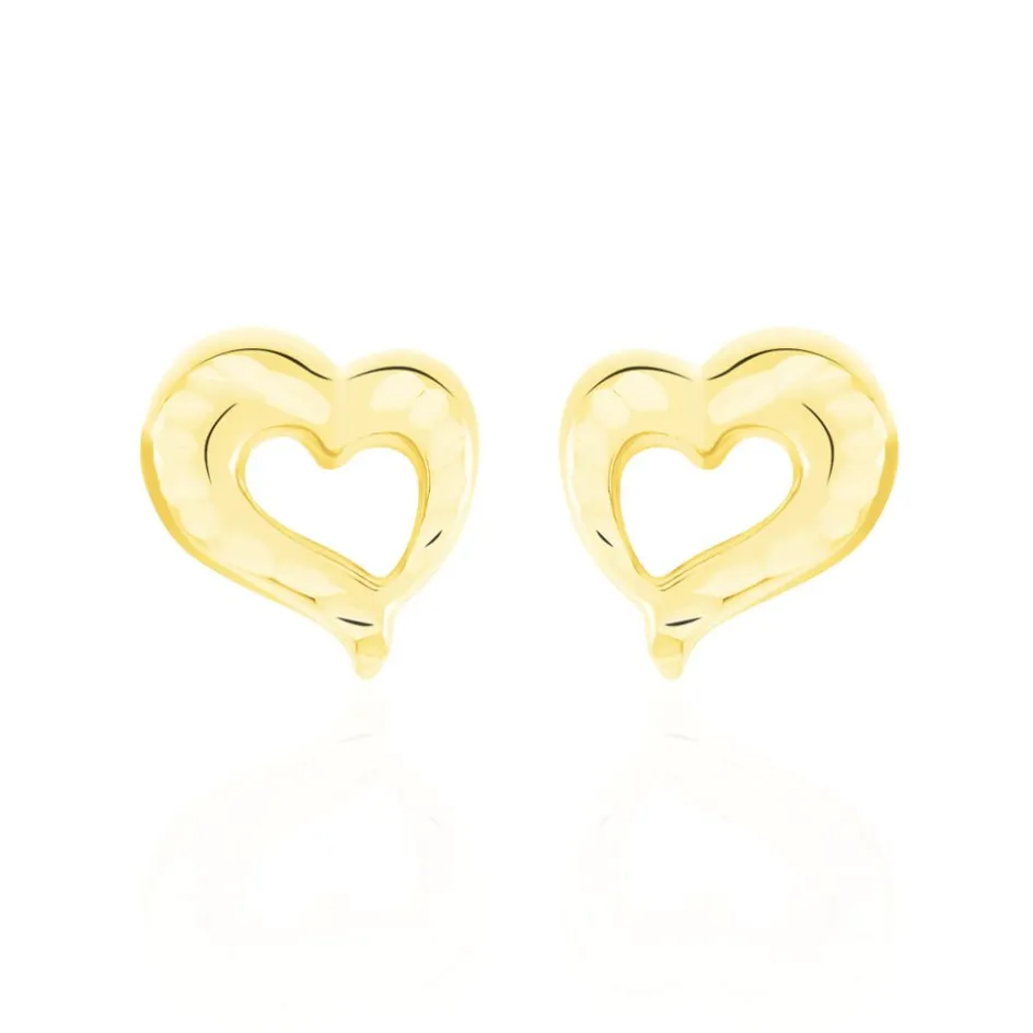 Boucles D’oreilles Or Jaune 375/1000 Forme C艙ur Effet Diamante