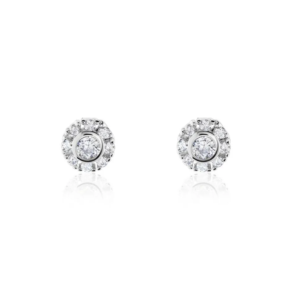 Boucles D’oreilles Puces Argent Blanc 925/1000 Oxydes De Zirconium Sertis 2 Griffes