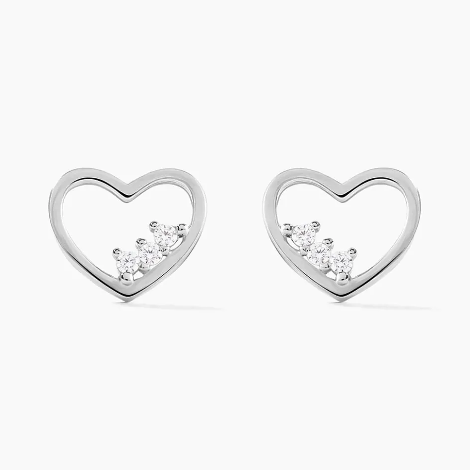 Boucles D’oreilles Puces Argent Blanc 925/1000 C艙urs Sertis Griffes 3 Oxydes De Zirconium