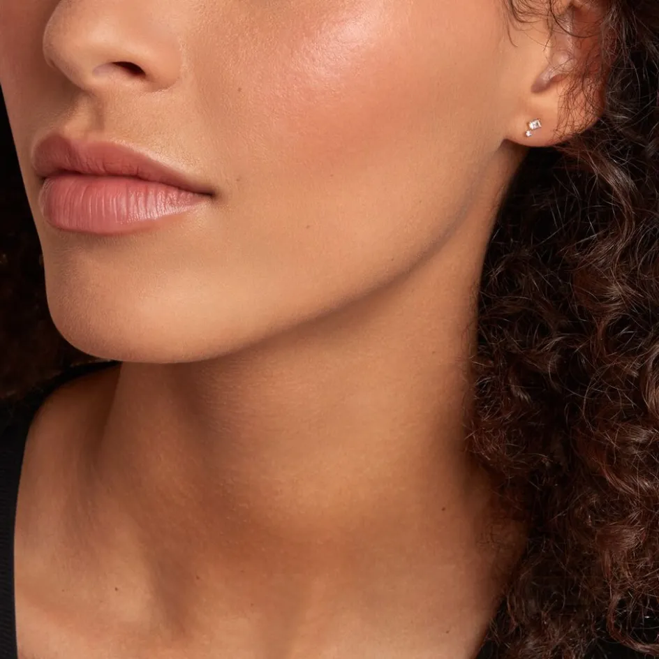 Boucles D’oreilles Puces Or Jaune 375/1000 Rectangles Et Rondes Oxydes De Zirconium Sertis Griffes