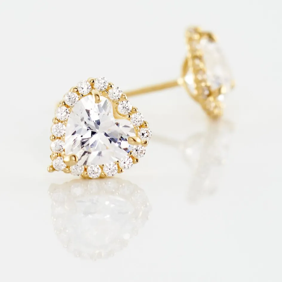 Boucles D’oreilles Or Jaune 375/1000 Puces C艙urs Oxydes De Zirconium Et Entourage Oxydes De Zirconium