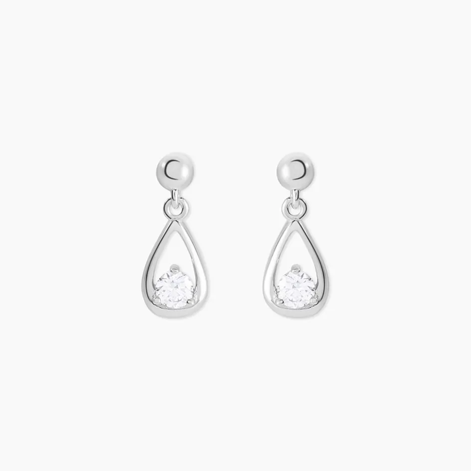 Boucles D’oreilles Puces Argent Blanc 925/1000 Formes Gouttes Et Oxydes De Zirconium