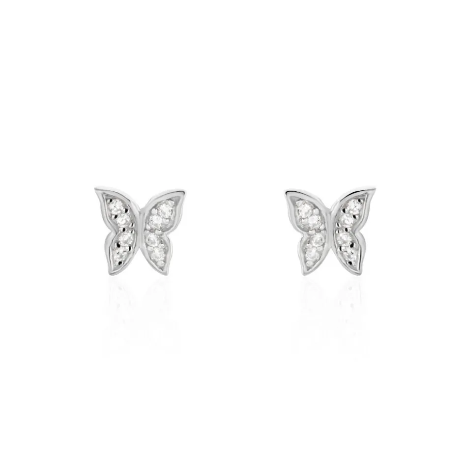 Boucles D’oreilles Puces Argent Blanc 925/1000 Papillons Pavage Oxydes De Zirconium