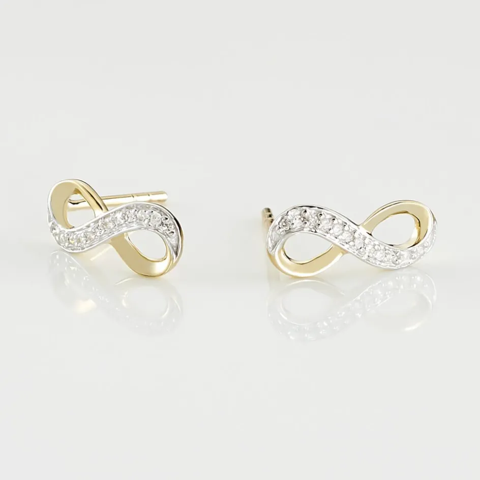 Boucles D’oreilles Puces Or Jaune 375/1000 Forme Infini Avec Pavage Diamants