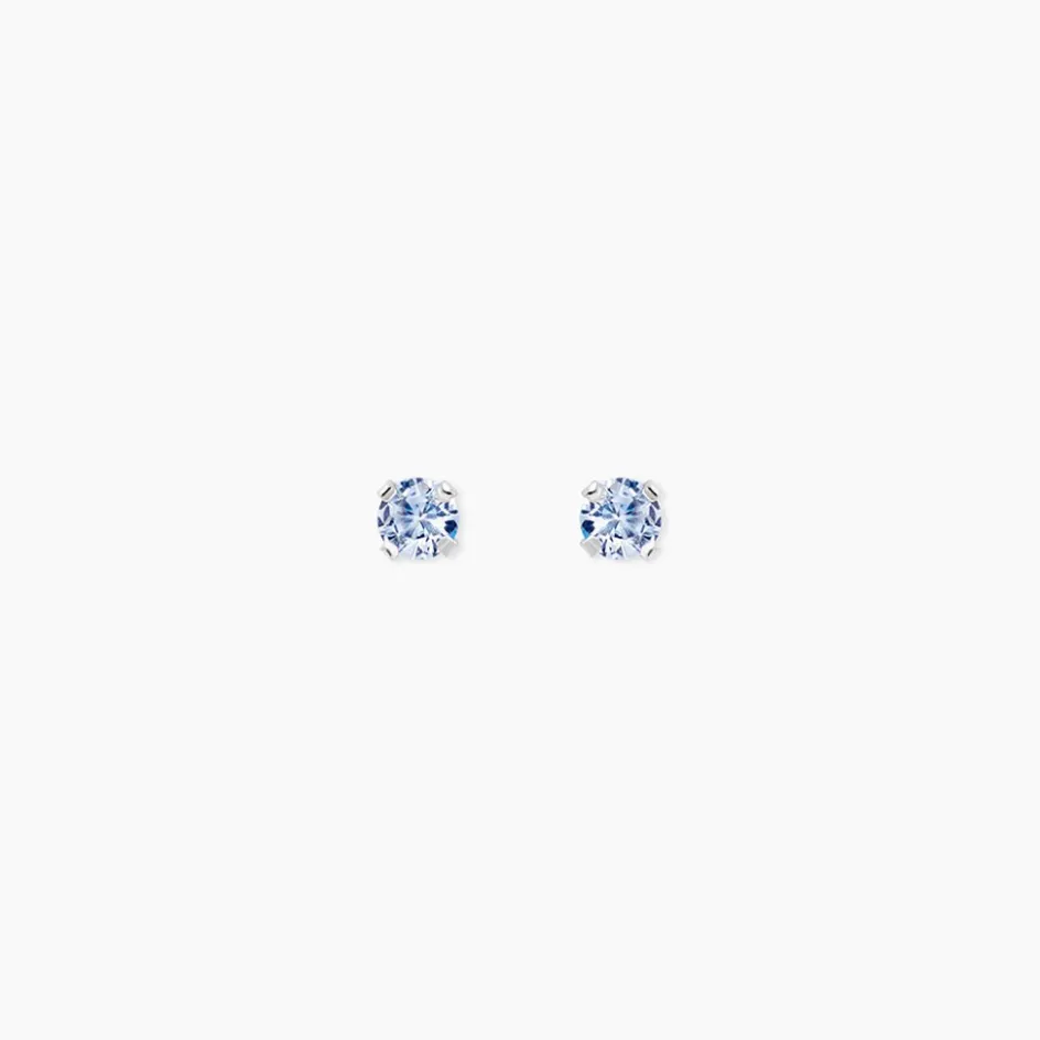 Boucles D’oreilles Or Blanc 375/1000 Puce Oxyde De Zirconium Bleu 3mm