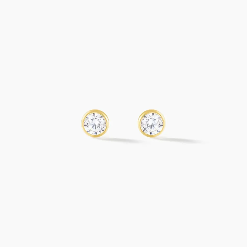 Boucles D’oreilles Puce Or Jaune 375/1000 Oxyde De Zirconium 3mm Pm