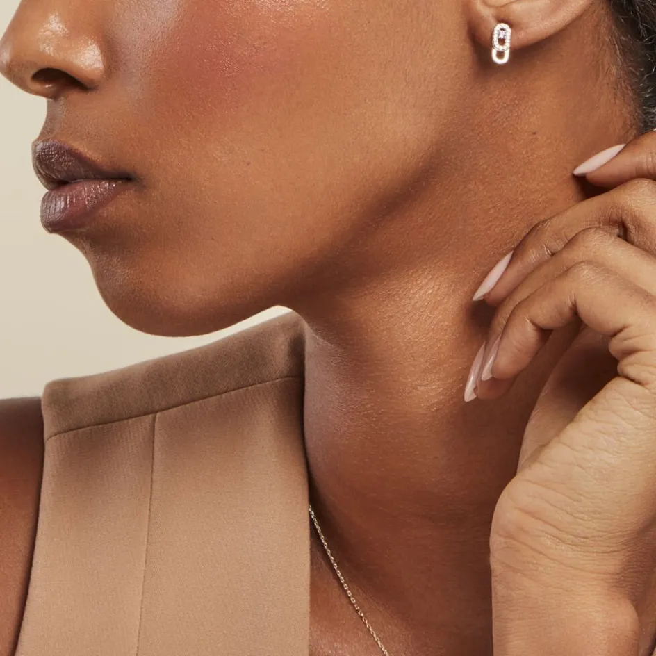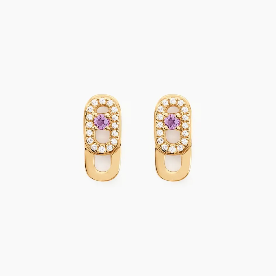 Boucles D’oreilles Or Jaune 375/1000 1 Amethyste Ronde Sertis Griffes Motif Maillons Ovale Oxyde De Zirconium