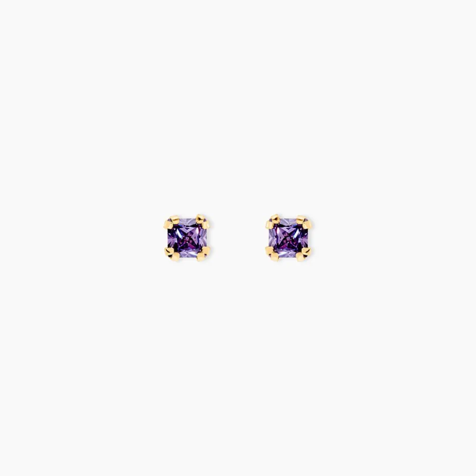 Boucles D’oreilles Or Jaune 375/1000 Puce Oxydes De Zirconium Violets Carres 3mm