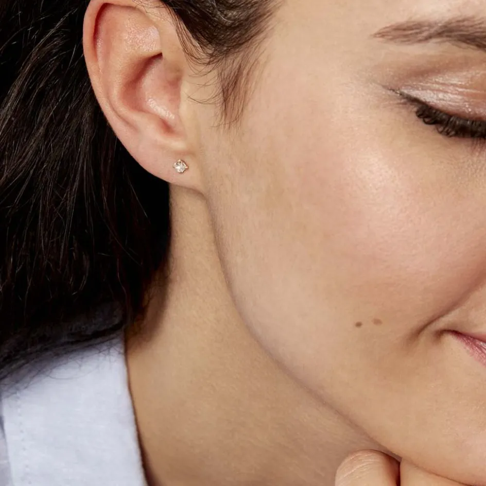 Boucles D’oreilles Or Jaune 375/1000 Puce Oxyde De Zirconium Carres 3mm