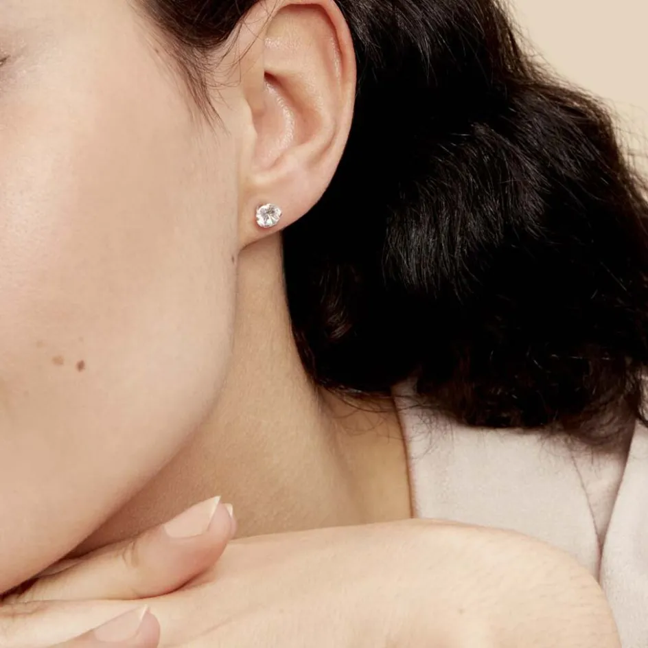 Boucles D’oreilles Or Jaune 375/1000 Puce Oxyde De Zirconium 6mm
