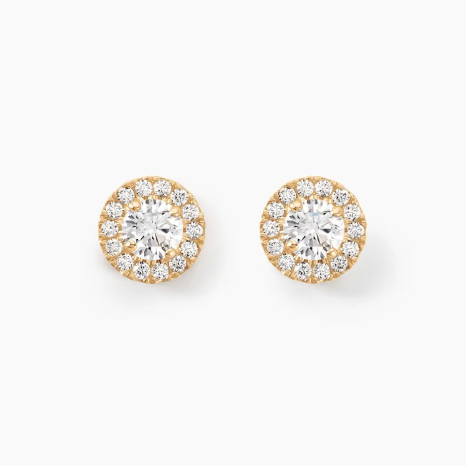 Boucles D’oreilles Or Jaune 375/1000 Puces Rondes Oxydes De Zirconium Et Entourage Oxydes De Zirconium