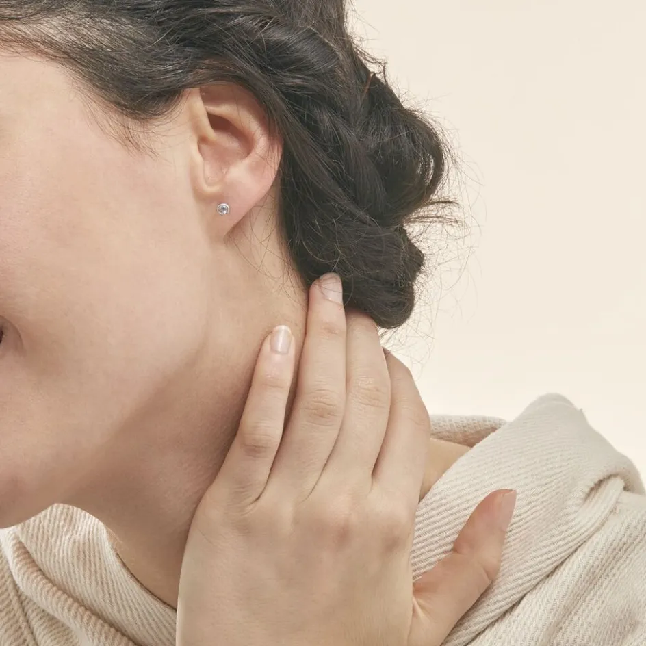 Boucles D’oreilles Puce Or Blanc 375/1000 Topaze Bleue 3mm Pm