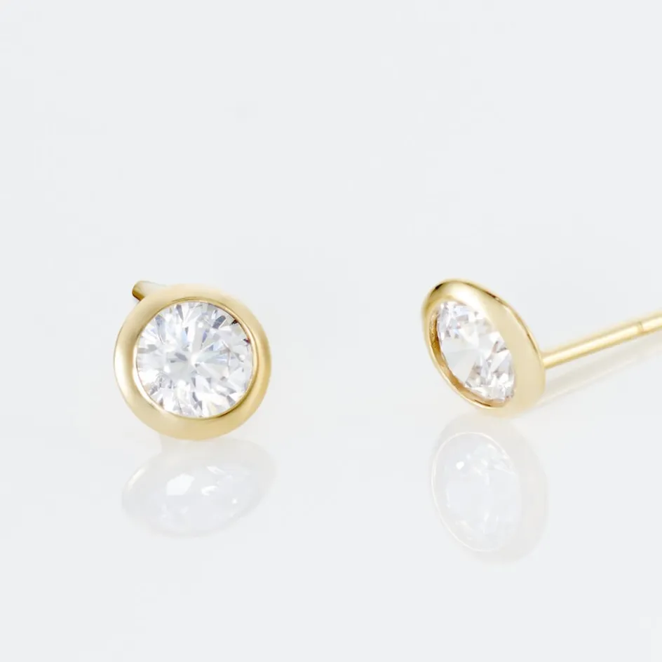 Boucles D’oreilles Or Jaune 375/1000 Puces 4mm Oxydes De Zirconium Clos Mm