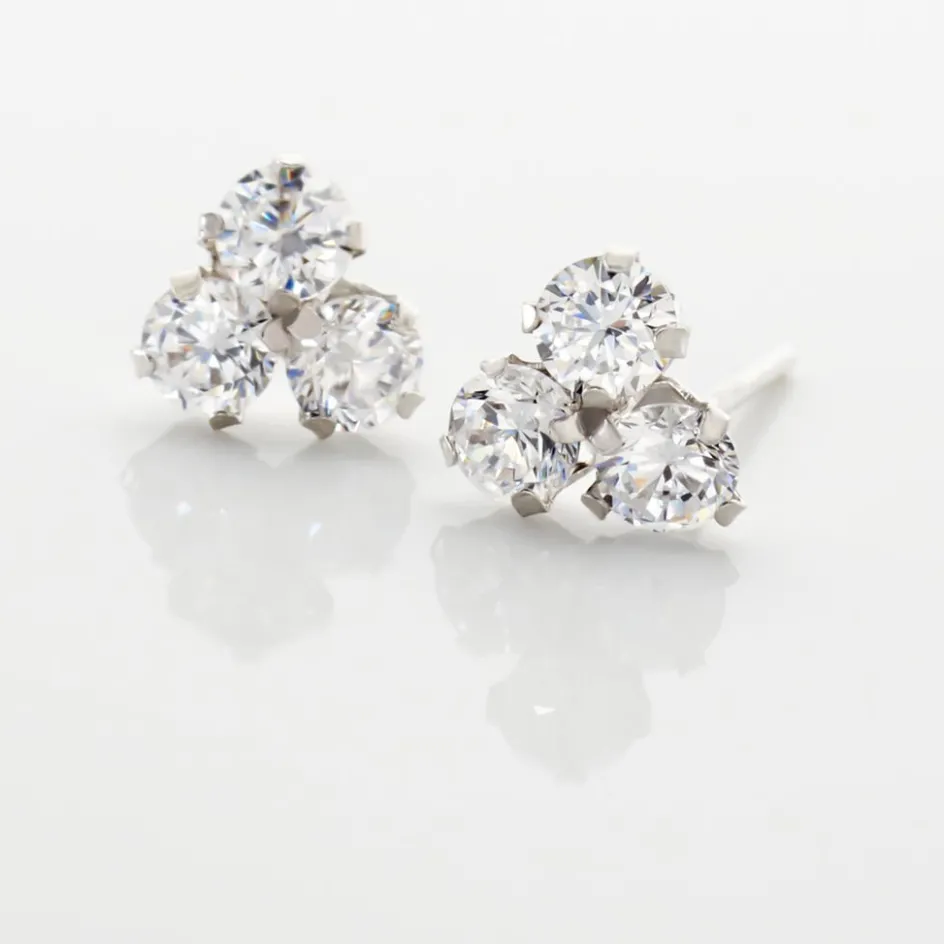 Boucles D’oreilles Or Blanc 375/1000 3 Oxydes De Zirconium 2.5mm