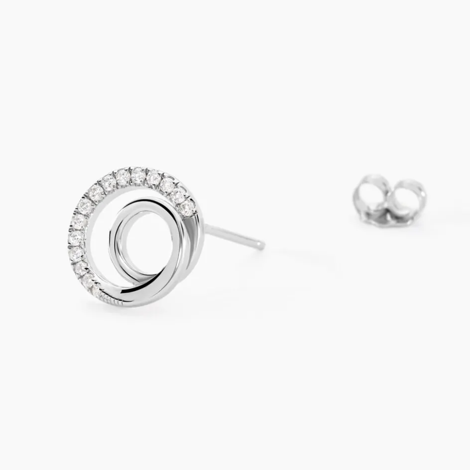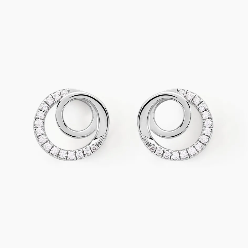 Boucles D’oreilles Puces Argent Blanc 925/1000 Formes Tourbillons Pavages Oxydes De Zirconium