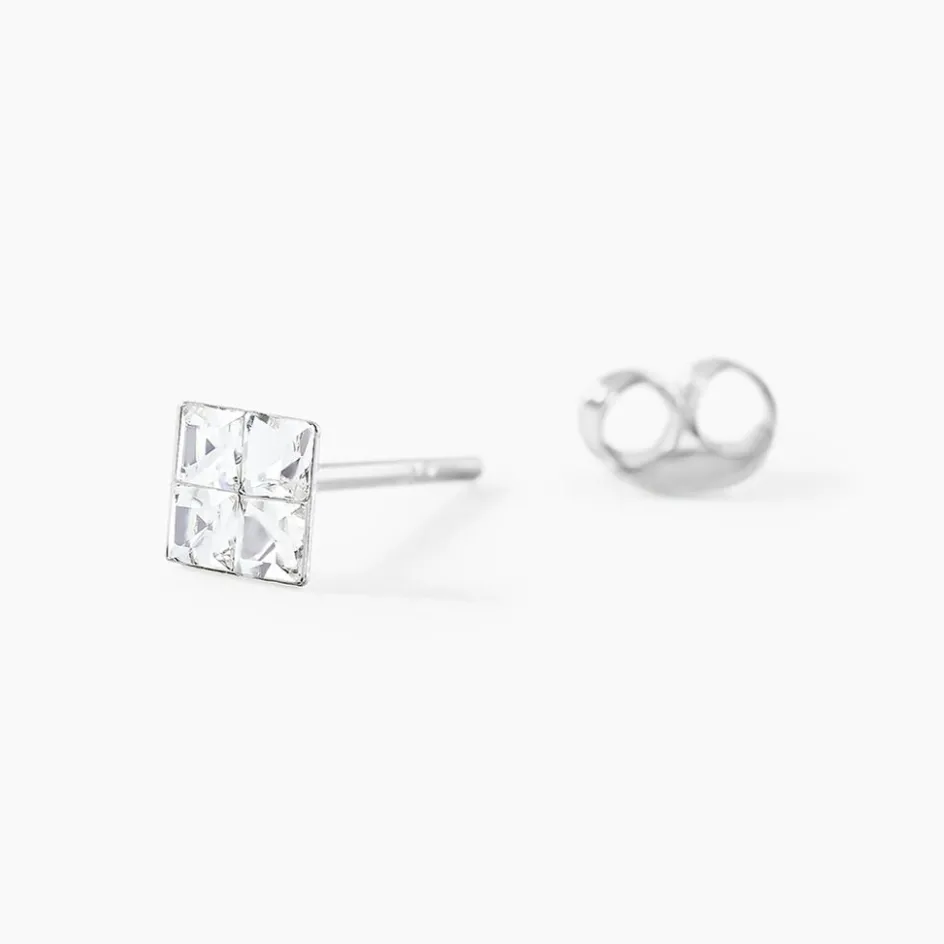 Boucles D’oreilles Puces Argent Blanc 925/1000 Carres 4 Oxydes De Zirconium